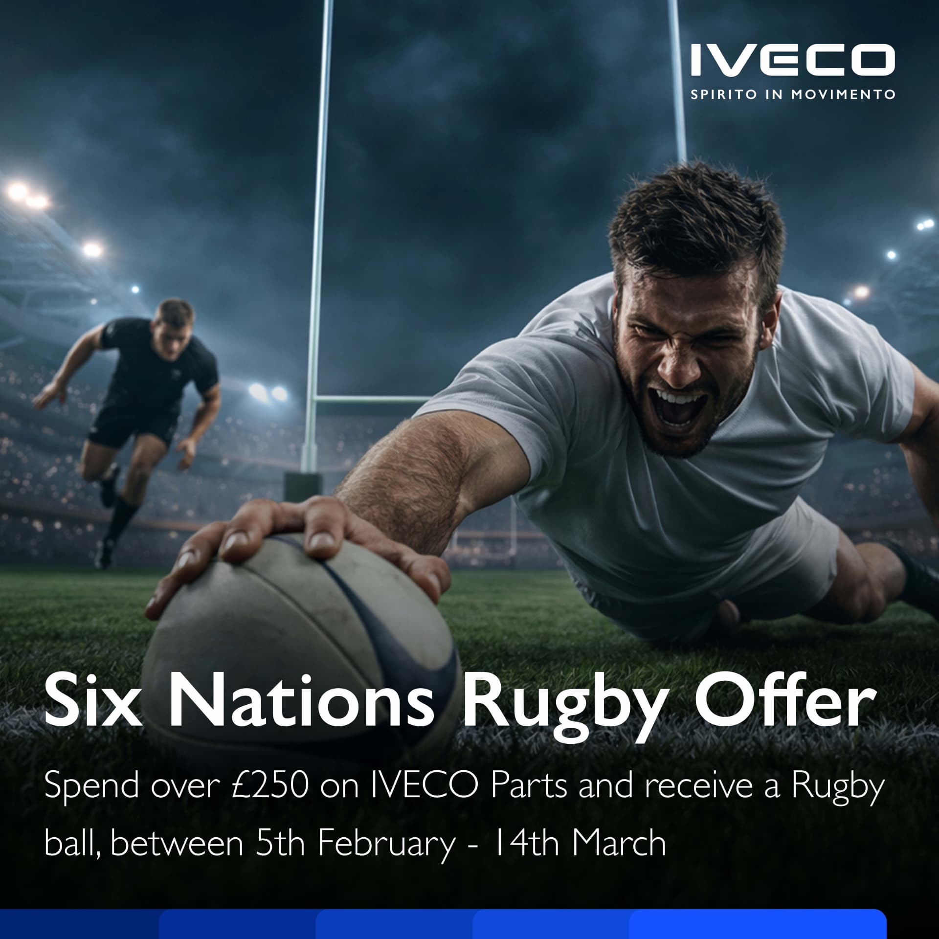 Spend over £250 on IVECO Parts and receive a Rugby ball, between 5th February - 14th March at Guest