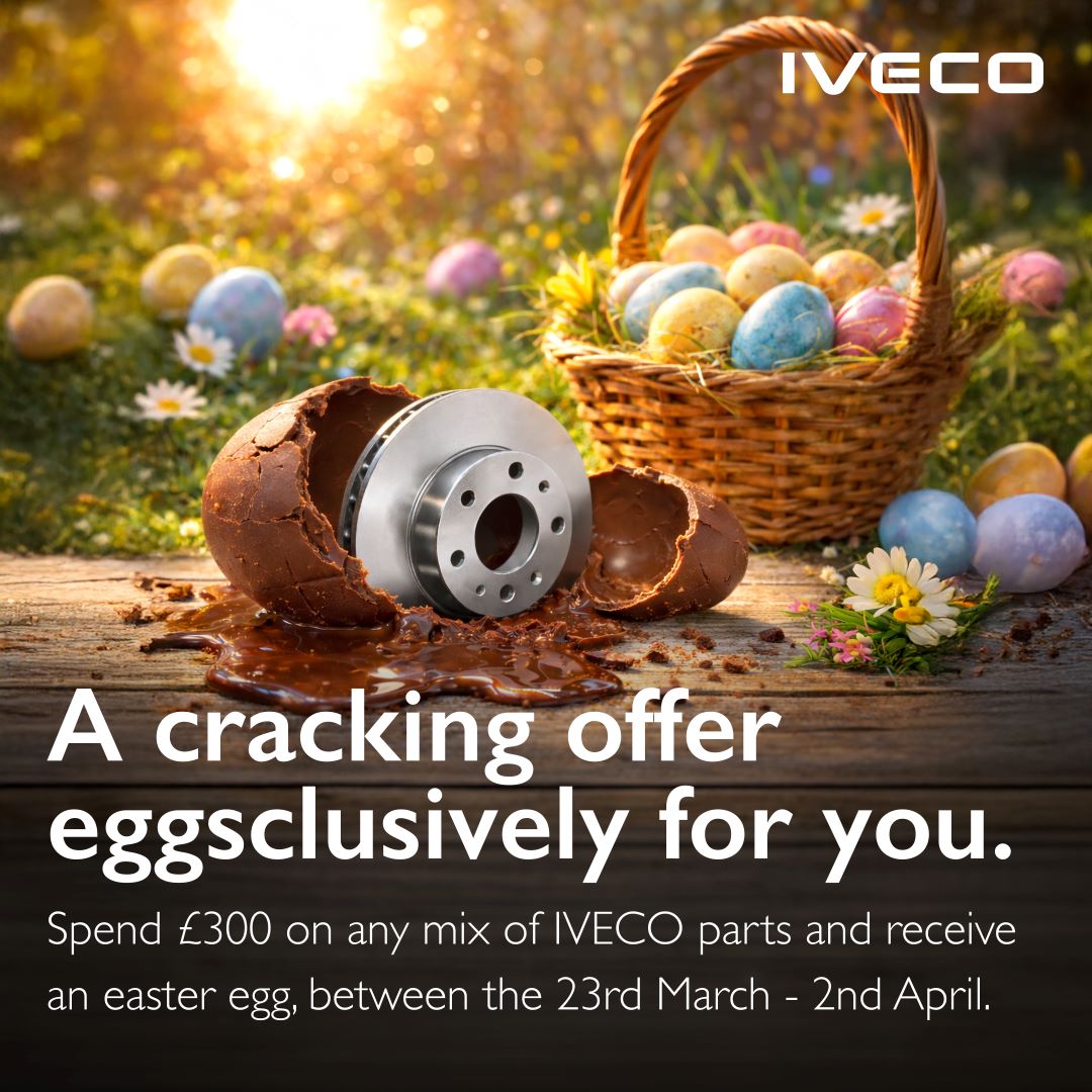 Spend £300 on any mix of IVECO parts and receive an easter egg, between the 23rd March - 2nd April.